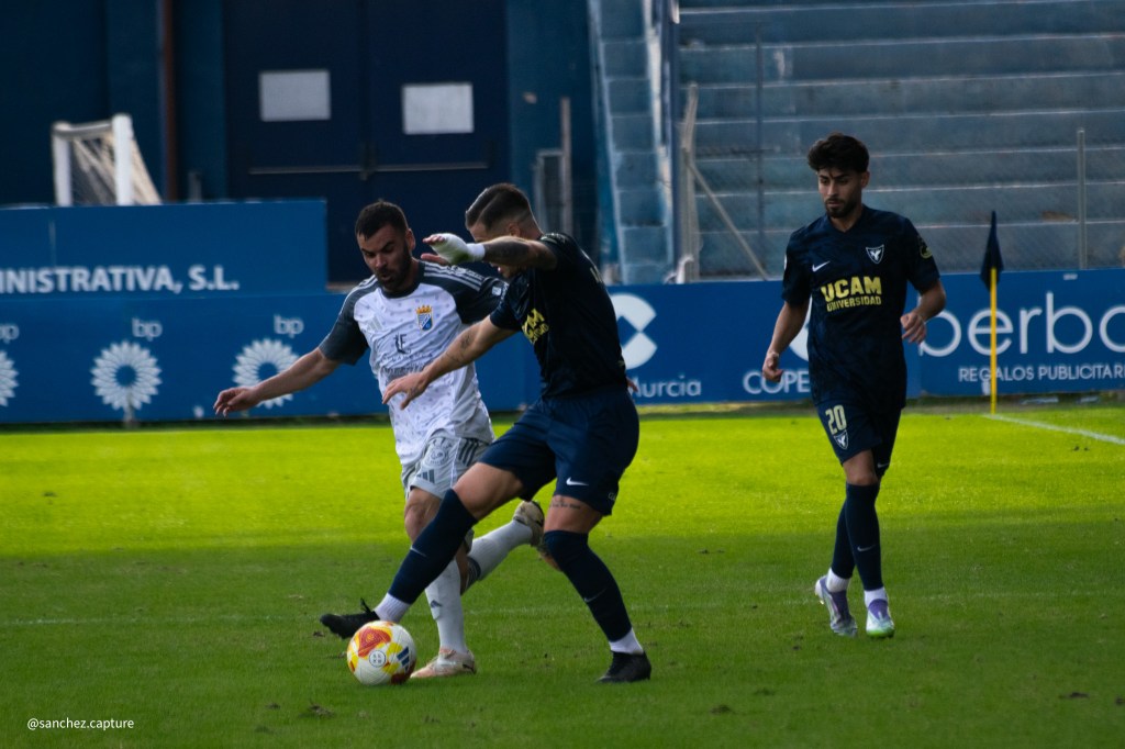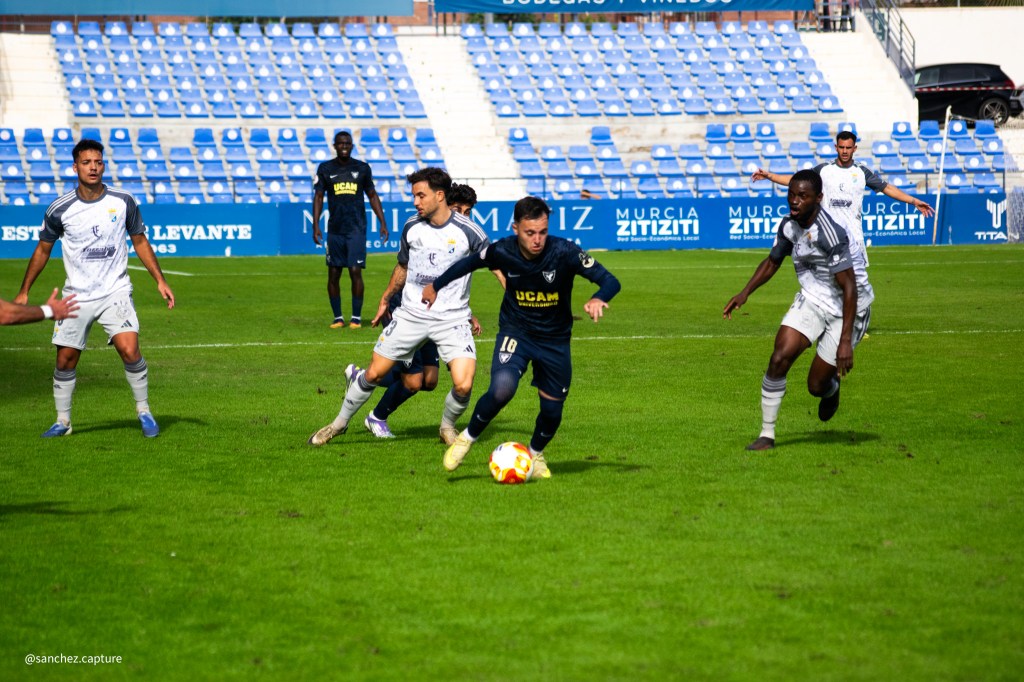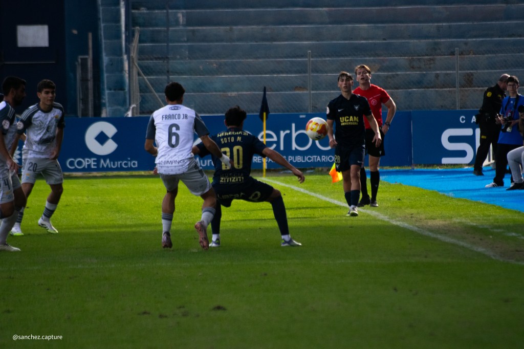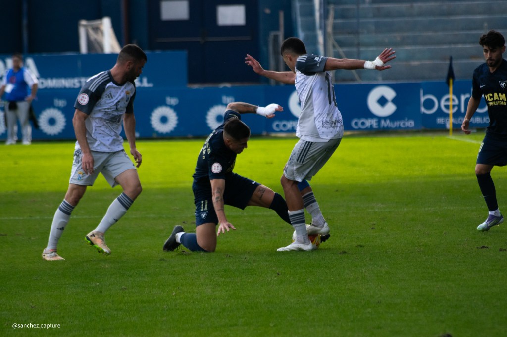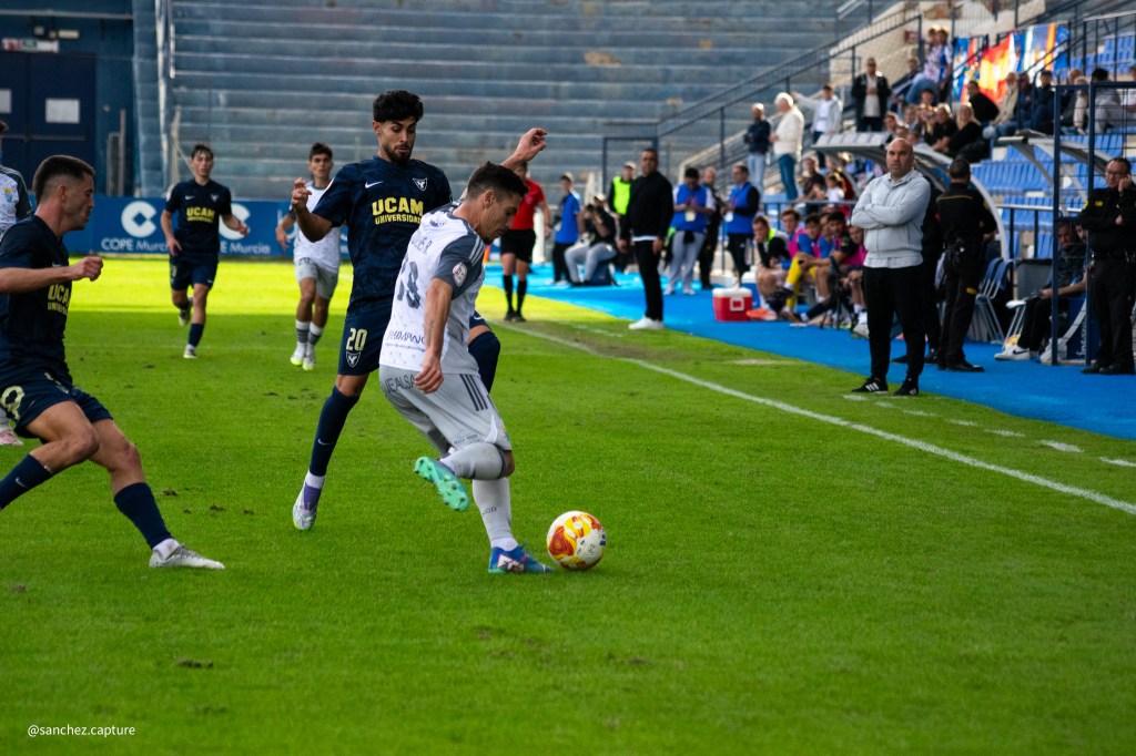 Tras el descanso, el UCAM Murcia CF mantuvo el control y volvió a golpear. A los diez minutos de reanudarse el juego, Dani Aquino cazó un balón suelto en el área y no perdonó ante el meta jerezano para firmar el 2-0, ampliando la ventaja y encarrilando el partido en un momento clave.