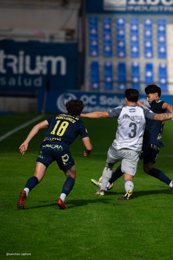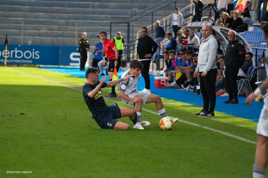 Desde el pitido inicial, el equipo mostró personalidad y un dominio claro del juego, acumulando presencia ofensiva y acercamientos de peligro. En los primeros compases, Julito estuvo a punto de inaugurar el marcador en una falta lateral botada por Urcelay, disponiendo de una doble ocasión dentro del área que obligó al portero visitante a intervenir con una parada de mucho mérito. Desgraciadamente, en esa acción, Julito cayó lesionado y tuvo que retirarse del terreno de juego. Dani Aquino fue el elegido para entrar en su lugar.