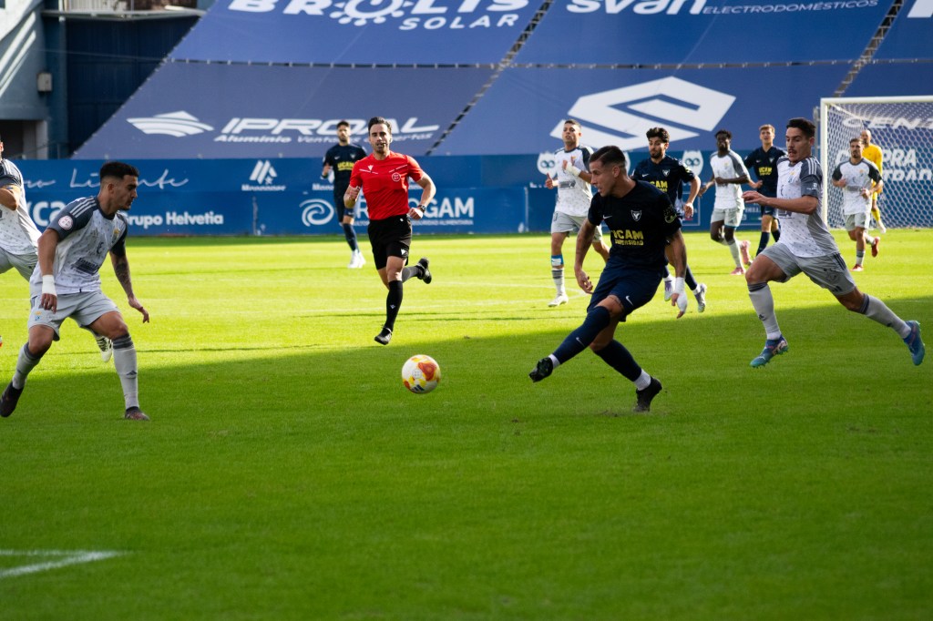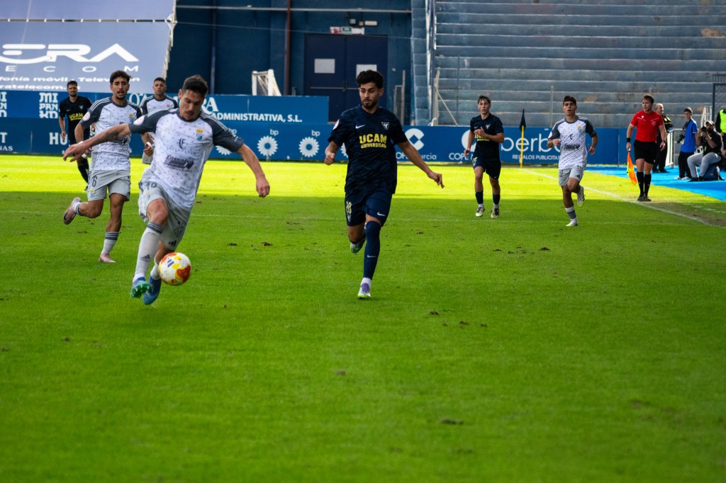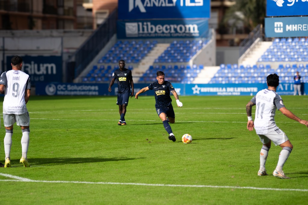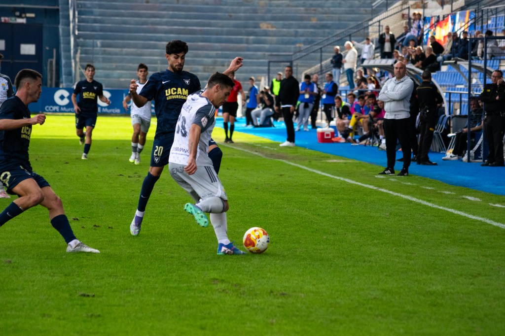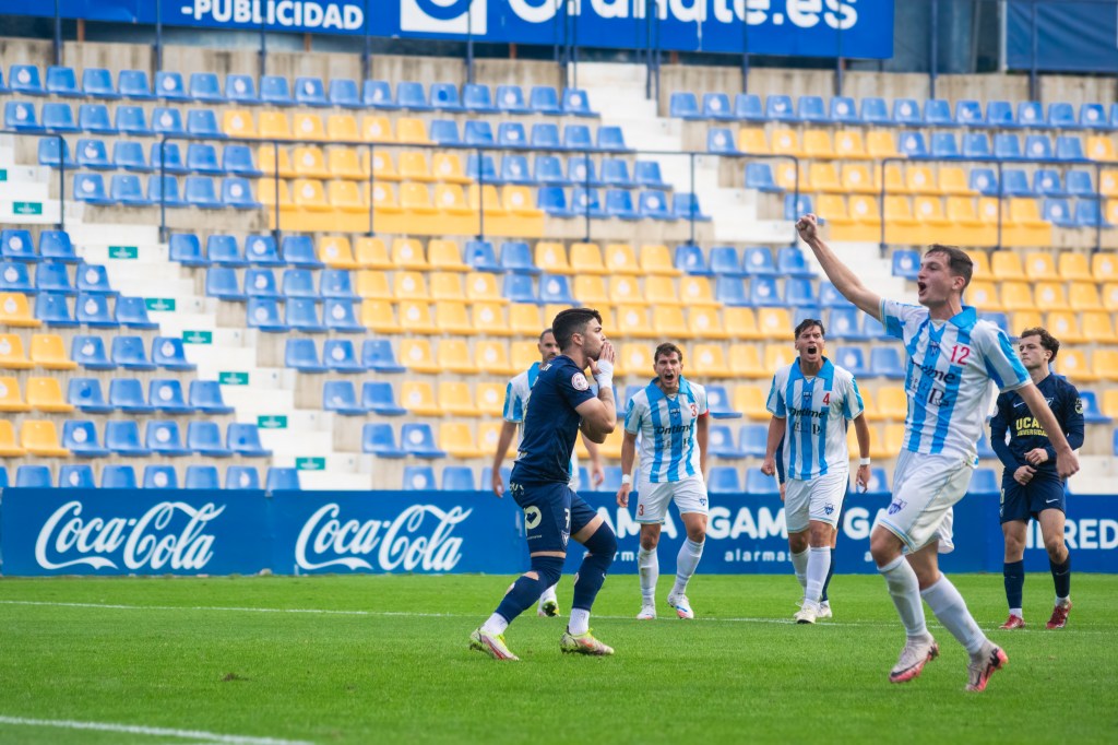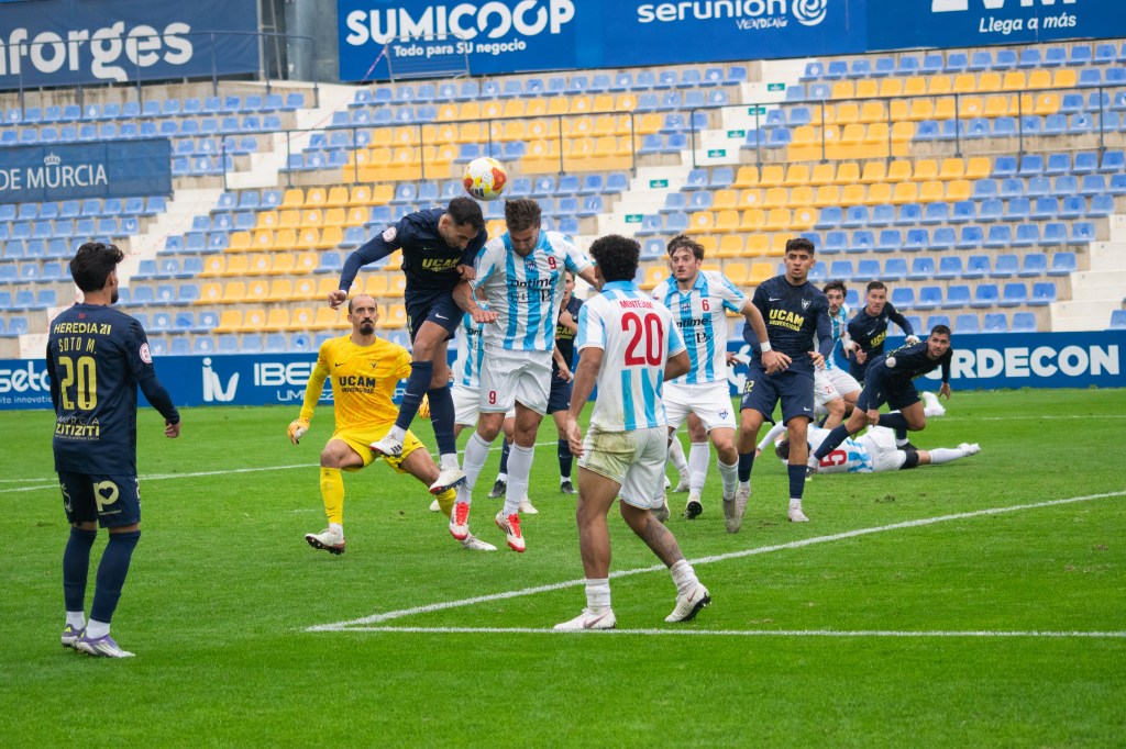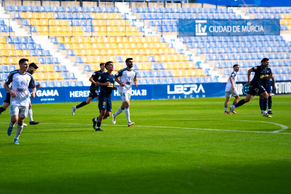 Tras el descanso, el UCAM Murcia CF mantuvo el control y volvió a golpear. A los diez minutos de reanudarse el juego, Dani Aquino cazó un balón suelto en el área y no perdonó ante el meta jerezano para firmar el 2-0, ampliando la ventaja y encarrilando el partido en un momento clave.