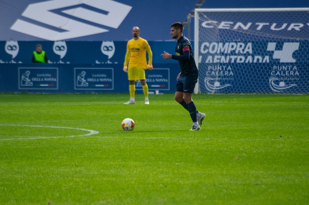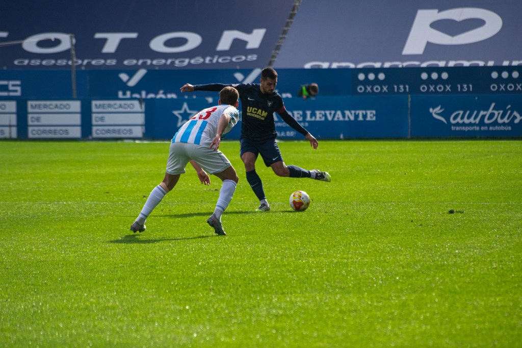 El UCAM Murcia Club de Fútbol no bajó la intensidad y continuó imponiendo su juego con firmeza. Fruto de esa insistencia, diez minutos antes del descanso llegó la recompensa. Pontones firmó una acción sensacional por banda, ganó hasta tres duelos, llegó al área rival y conectó un pase sensaciones con Javi Ramírez, que mandó al fondo de la red para establecer el 1-0 y cerrar una primera mitad de este encuentro liguero en el actual Estadio Heredia 21 La Condomina.