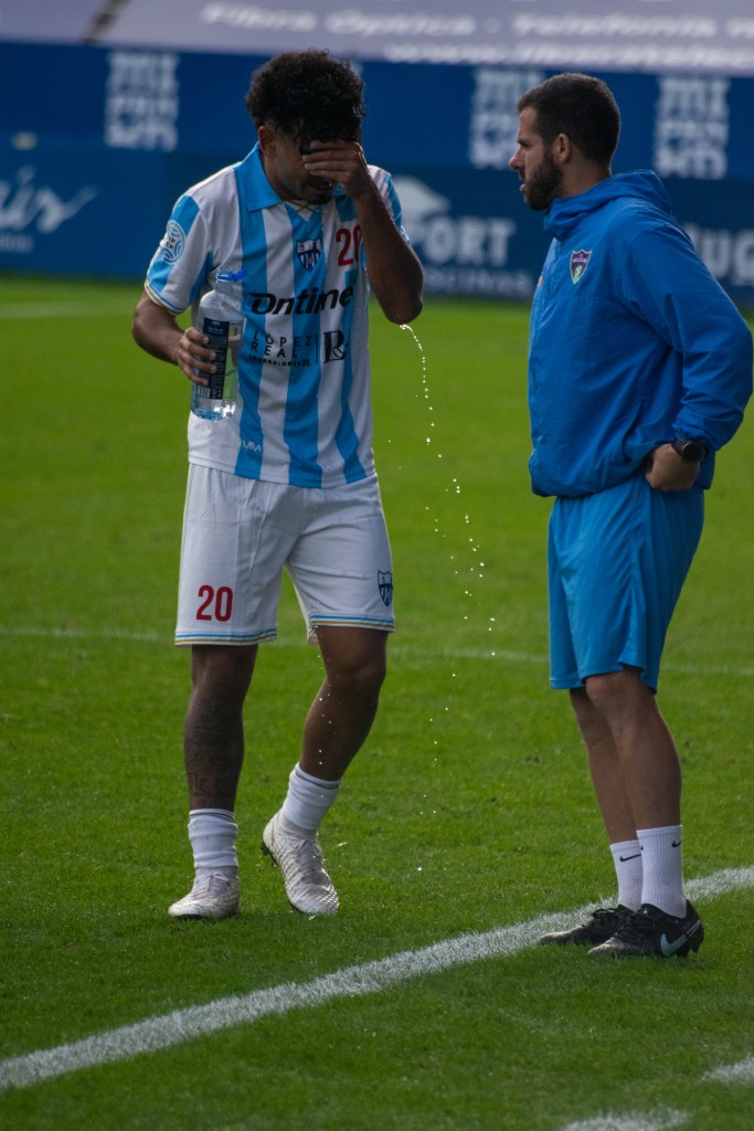 Desde el pitido inicial, el equipo mostró personalidad y un dominio claro del juego, acumulando presencia ofensiva y acercamientos de peligro. En los primeros compases, Julito estuvo a punto de inaugurar el marcador en una falta lateral botada por Urcelay, disponiendo de una doble ocasión dentro del área que obligó al portero visitante a intervenir con una parada de mucho mérito. Desgraciadamente, en esa acción, Julito cayó lesionado y tuvo que retirarse del terreno de juego. Dani Aquino fue el elegido para entrar en su lugar.